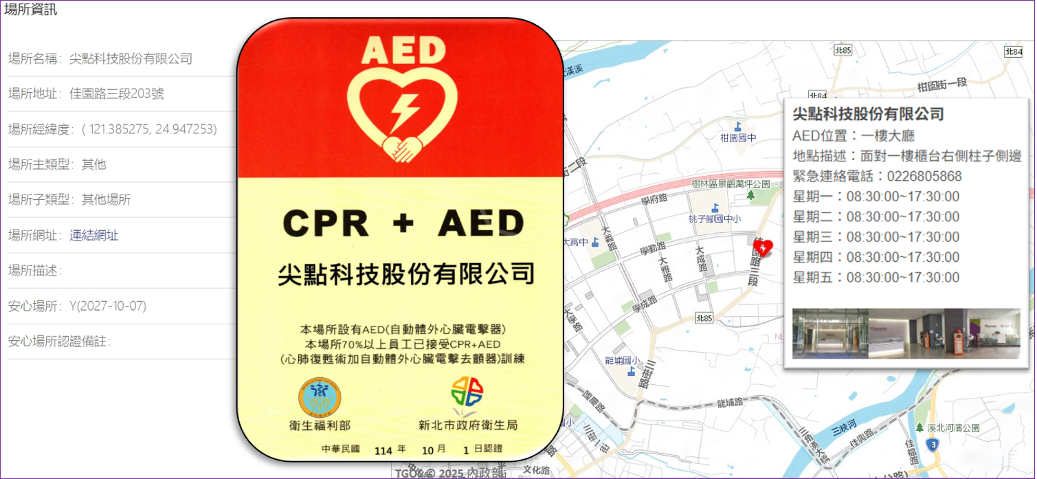 Topoint has successfully passed the “CPR + AED Safe Location” certification. We sincerely thank the New Taipei City Fire Department’s EMT teams for their multiple on-site training sessions, as well as our colleagues at Topoint for our enthusiastic colleagues and hands-on drills.